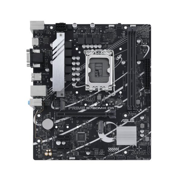 De ASUS PRIME B760M-K D4 is een moederbord met LGA 1700-socket en ondersteunt Intel Core-processors. Het beschikt over 4 DDR4-sloten voor een maximale geheugencapaciteit van 128 GB. Het ontwerp is compact en heeft een Micro-ATX-formaat, wat het ideaal maakt voor kleinere systemen. Het biedt aansluitingen voor HDMI- en VGA-beeldschermen. De ASUS PRIME B760M-K D4 is een betaalbare keuze voor een desktop-oplossing en biedt uitstekende prestaties en betrouwbaarheid. Het ondersteunt ook diverse uitbreidingsmogelijkheden, zoals SATA- en M.2-opslag, en heeft diverse verbindingsmogelijkheden, waaronder USB 3.2 en LAN.