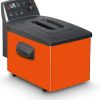 Een opvallende toevoeging aan je keuken met zijn trendy oranje kleur. Uitgerust met een dubbel verwarmingselement, zorgt deze FRITEL friteuse ervoor dat je tot 50% sneller kunt frituren. Je frietjes zullen sneller knapperig worden, wat resulteert in minder vettige en gezondere snacks!