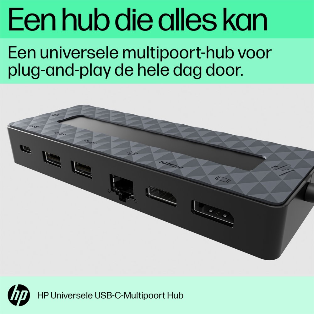 Een hub die het allemaal doet. Profiteer van de nieuwe mogelijkheden met de HP Universal USB-C Multiport hub, die nu elke met USB-C® via HDMI 2.0 en 1 DisplayPort™ 1.2. Deze hub is alles wat je nodig hebt om verbonden te blijven.