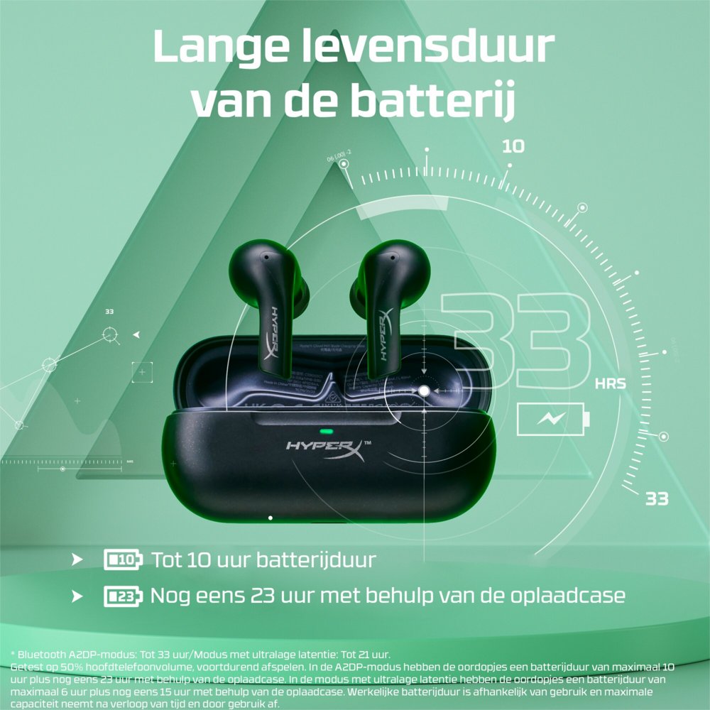 Lichtgewicht oordopjes gebouwd voor gaming. HyperX Cloud MIX Buds zijn echte draadloze oordopjes, ontworpen voor gamen, met een 2,4 GHz verbinding met lage latentie. De dubbele draadloze Cloud MIX Buds zijn licht en comfortabel en hebben een draadloze USB Type-C adapter voor gaming met ultralage latentie, en een handige Bluetooth® heb je genoeg power om te kunnen blijven genieten.