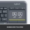 Dankzij het compacte formaat van de Logitech K400 Plus, past deze gemakkelijk op je schoot of op een tafel. Het toetsenbord heeft een QWERTY-indeling met Nederlandse toetsen, waardoor je snel en gemakkelijk kunt typen. Het touchpad heeft ook speciale functies, waaronder scrollen en zoomen, waardoor je snel en efficiënt door pagina’s kunt navigeren.