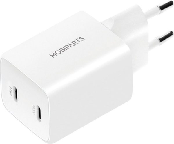 De Mobiparts GaN Wall Charger Dual USB-C is een handige en krachtige oplader waarmee je meerdere apparaten tegelijkertijd kunt opladen. Met twee USB-C-poorten biedt deze oplader maximale flexibiliteit en compatibiliteit voor een breed scala aan apparaten, waaronder smartphones, tablets, laptops en meer.