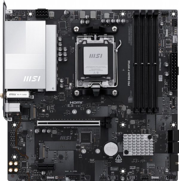 MSI PRO B840M-P WIFI6E. Processorfabrikant: AMD, Processor socket: Socket AM5, Compatibele processors: AMD Ryzen 7000 Series, AMD Ryzen 8000 Series, AMD Ryzen 9000 Series. Ondersteunde geheugen types: DDR5-SDRAM, Maximum intern geheugen: 256 GB, Geheugen slots type: DIMM. Ondersteunde opslagstationinterfaces: M.2, Micro SATA III, Ondersteunde types opslag-drives: HDD & SSD, Soorten RAID: 0, 1, 10. Ethernet interface type: 2.5 Gigabit Ethernet, LAN controller: Realtek RTL8125D, Wifi-standaard: Wi-Fi 6E (802.11ax). Component voor: PC, Moederbord form factor: micro ATX, Moederbord chipset familie: AMD