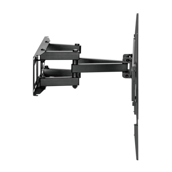 De beugel heeft een afneembare VESA-plaat, waardoor de installatie en montage van de televisie eenvoudiger en sneller verloopt, en een integraal kabelbeheersysteem dat zorgt voor een opgeruimde en professionele uitstraling van de kijkopstelling. Het ontwerp is geschikt voor zowel platte als gebogen schermen, waardoor hij flexibel inzetbaar is in uiteenlopende situaties.