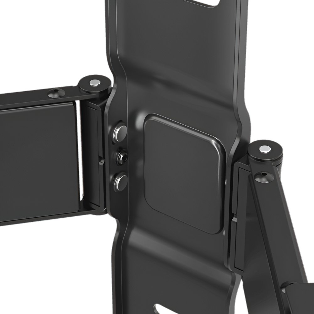 De beugel is vervaardigd uit hoogwaardig staal en kunststof met een zwarte poedercoating, wat zorgt voor een duurzame en stijlvolle afwerking. De afneembare VESA-plaat maakt installatie eenvoudig en snel.