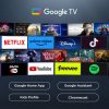Met Google TV heb je direct toegang tot een wereld aan entertainment. Van Netflix tot Disney+, van YouTube tot Apple TV+: alles staat overzichtelijk op รฉรฉn plek. Je kunt zoeken, afspelen en bedienen met je stem dankzij de ingebouwde Google Assistant. Ook stream je eenvoudig content vanaf je smartphone via Chromecast of Apple AirPlay 2. De krachtige processor en 32 GB opslag zorgen ervoor dat alles soepel en snel werkt, elke dag opnieuw.