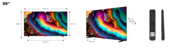 Ervaar een ongeëvenaarde bioscoopervaring met de TCL P74 98” 4K UHD HDR TV, een reusachtig scherm van 2,49 meter dat je kijkruimte transformeert. Dit muurvullende display biedt adembenemende beeldkwaliteit met 4K UHD resolutie en HDR-ondersteuning, waardoor elke scène tot leven komt met rijke kleuren en kristalheldere details.