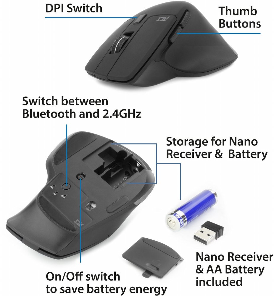 De ACT AC5147 draadloze multi connect muis is een veelzijdige en moderne oplossing voor gebruikers die efficiënt willen werken op meerdere apparaten tegelijk. Dankzij de combinatie van Bluetooth en een USB-A nano ontvanger verbind je deze muis eenvoudig met maximaal drie apparaten, waarbij je kunt schakelen tussen bijvoorbeeld een laptop, desktop en tablet zonder opnieuw te koppelen. Dit maakt de muis bijzonder geschikt voor zowel kantooromgevingen als thuiswerkplekken waar flexibiliteit centraal staat.
