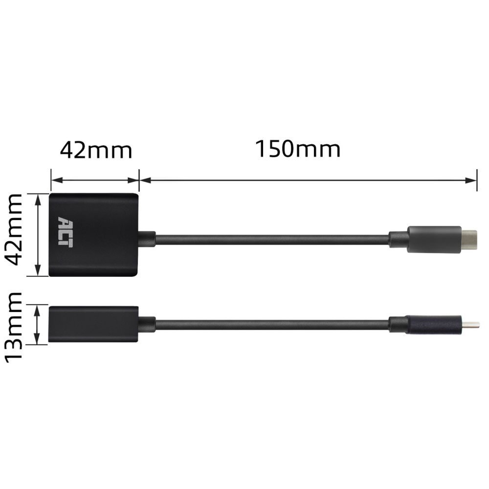 De ACT AC7300 USB-C naar VGA adapter sluit een laptop met USB-C aan op een beeldscherm of beamer met VGA. De maximale ondersteunde resolutie is 1920×1080 pixels. Deze resolutie is perfect voor het tonen van video’s, afbeeldingen, presentaties etc. Let er wel op dat de notebook een USB-C-poort met DP Alt Mode-ondersteuning heeft.