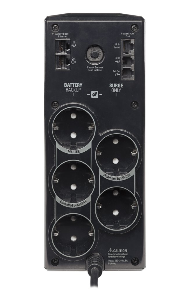 De UPS is voorzien van AVR, dit verlengt de levensduur van de batterij en maximaliseert de runtime door lage en hoge spanningen te corrigeren zonder de batterij te ontladen. Verder beschikt de noodstroomvoorziening over 5 battery+surge protected uitgangen. Tevens is PowerChute Serial Shutdown software en een usb kabel (type B to type A) inbegrepen.