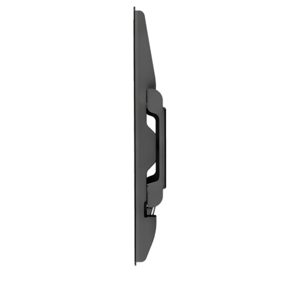 Met een vaste afstand van slechts 27 mm tot de muur zorgt deze beugel voor een strakke en ruimtebesparende installatie, ideaal voor zowel thuisgebruik als professionele omgevingen. De beugel is vervaardigd uit hoogwaardig staal en kunststof met een zwarte poedercoating, wat zorgt voor duurzaamheid en een moderne uitstraling.