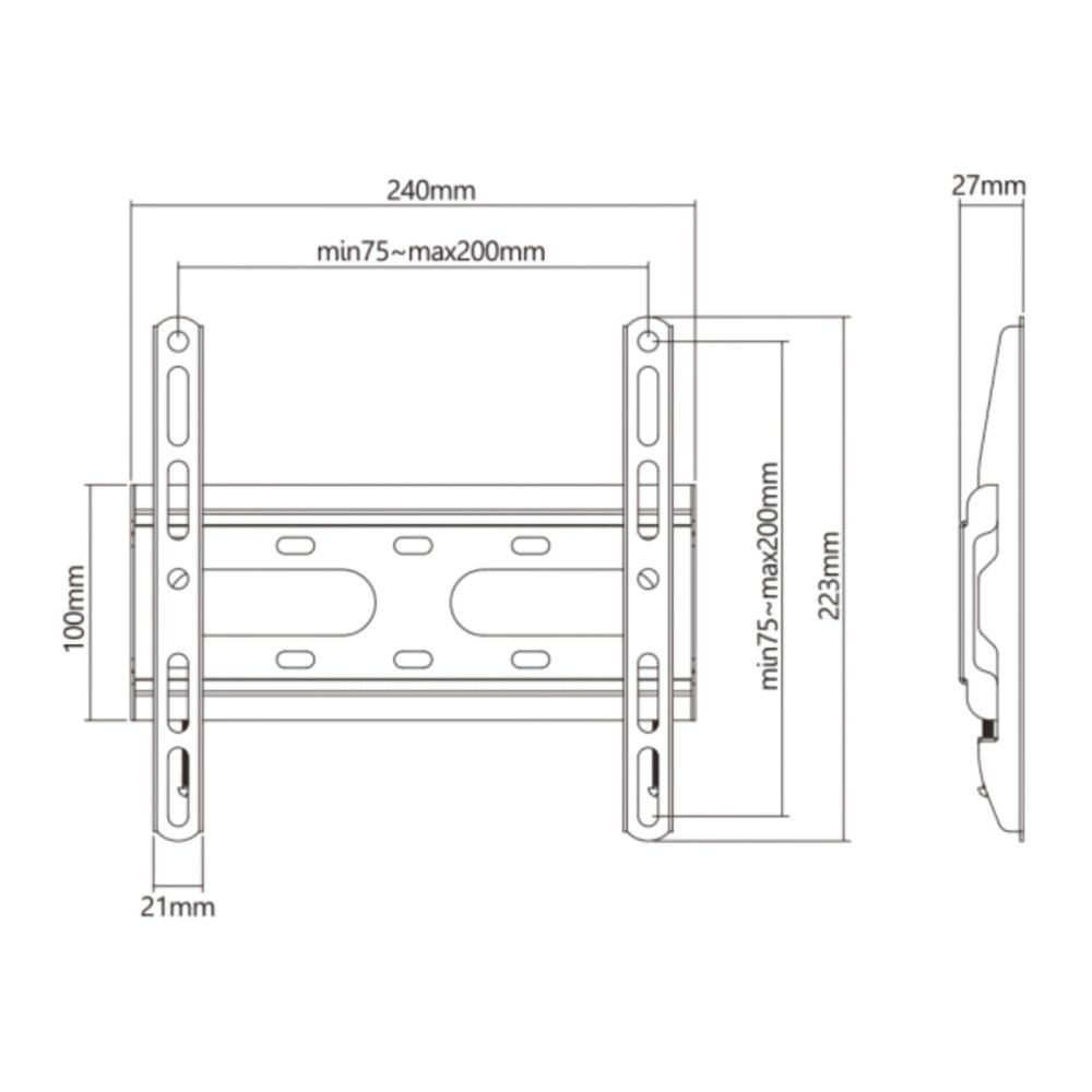 De SBOX PLB-2522F-2 is een compacte en betrouwbare vaste tv-muurbeugel, ontworpen voor schermformaten van 23 tot 43 inch met een maximaal gewicht van 45 kg. Dankzij de brede VESA-compatibiliteit van 75Ă—75 mm tot 200Ă—200 mm is deze beugel geschikt voor een breed scala aan tv-modellen, inclusief gebogen schermen.