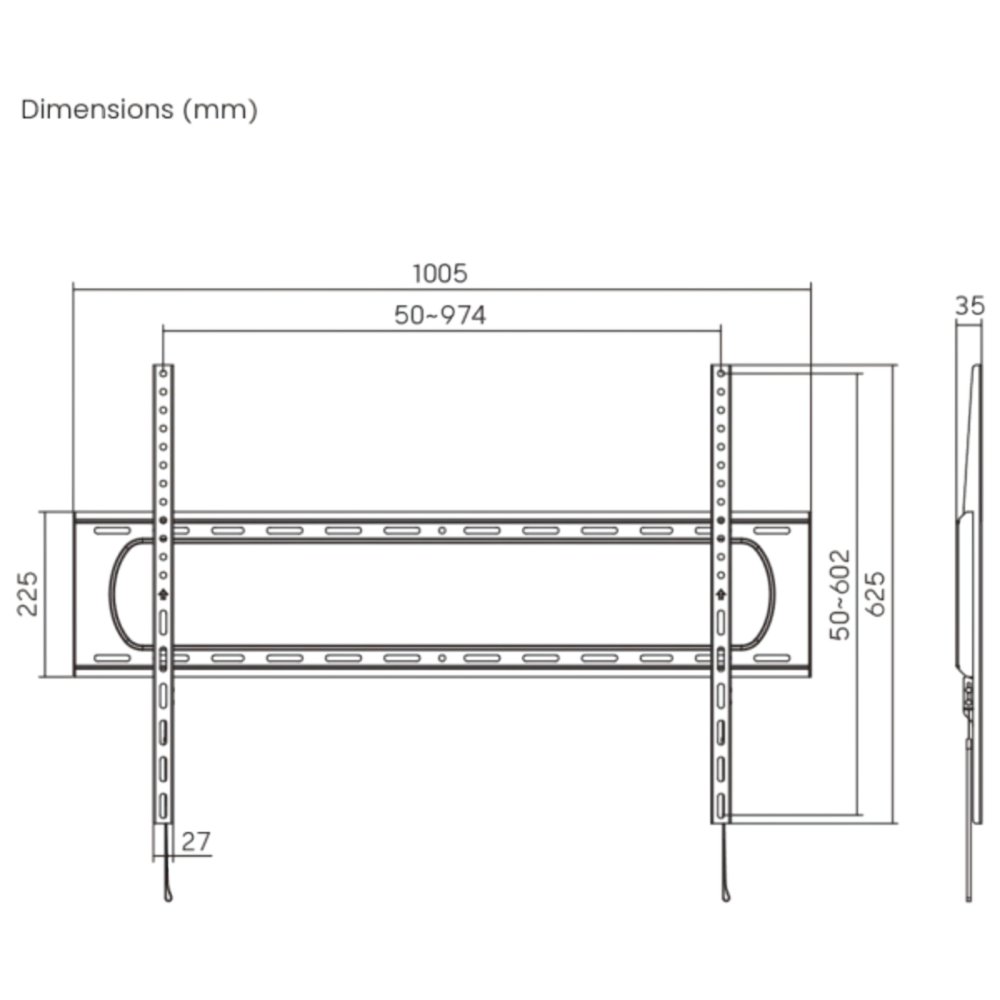 De afneembare VESA-plaat maakt de installatie eenvoudig en snel. De geĂŻntegreerde waterpas helpt bij het nauwkeurig uitlijnen van de tv tijdens de montage. Met afmetingen van 35Ă—1005Ă—625 mm biedt deze beugel een solide en discrete oplossing voor het ophangen van grote televisies.
