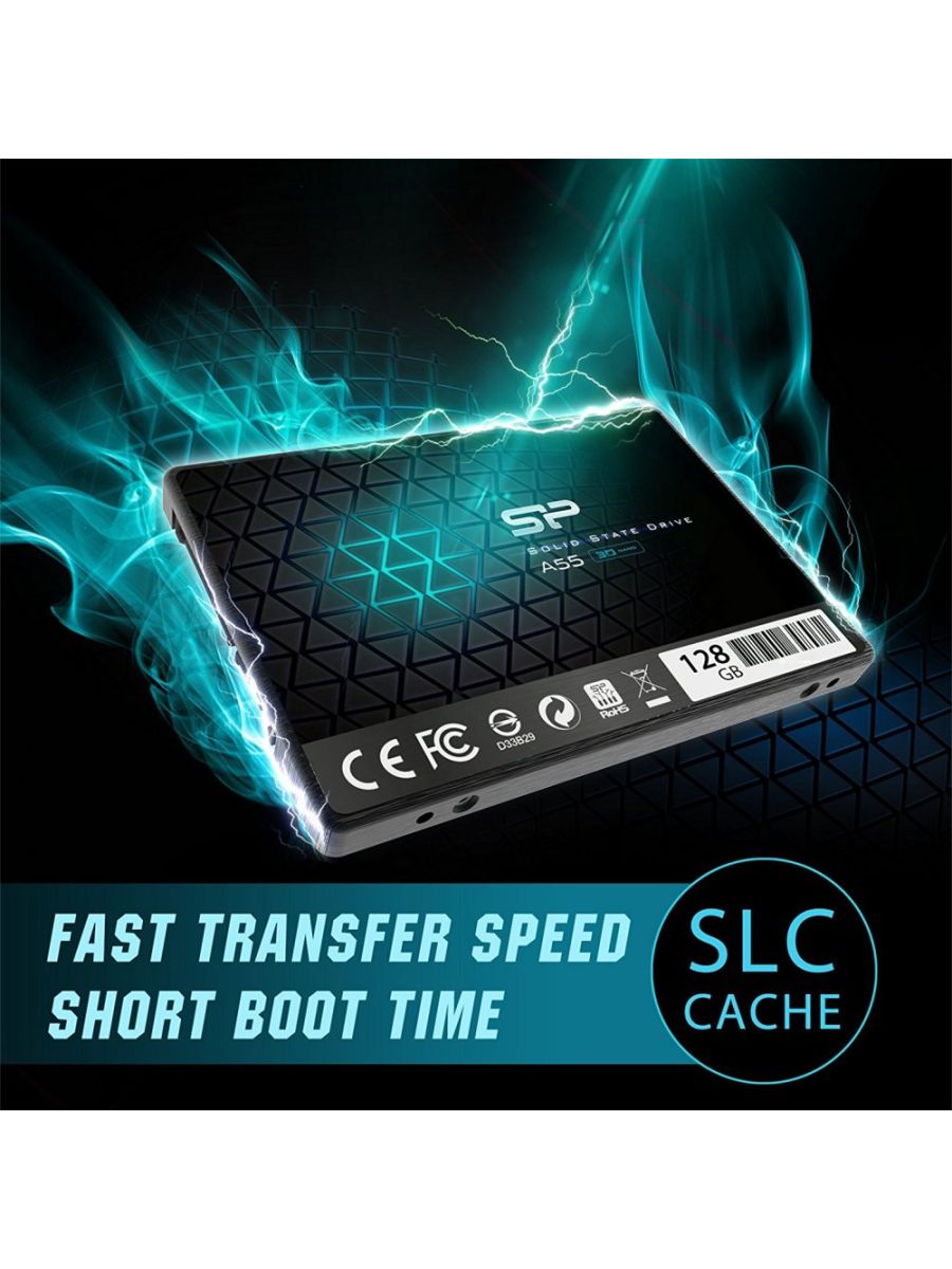 De A55 maakt gebruik van de “SLC Cache Technologie”, de nieuwe caching architectuur die zowel SLC en TLC flash blokken combineert. Deze technologie maakt het mogelijk dat alle data eerst in het SLC-gedeelte worden geschreven en vervolgens sequentieel gekopieerd worden naar TLC, en dus leidt tot een hogere piek in de schrijfprestatie. Bovendien maakt de A55 eveneens gebruik van “DRAM buffer cache” om de prestaties te verbeteren. Bovendien kan een dergelijke technologie de schrijf-amplificatie op het TLC- gedeelte verminderen en dus een betere duurzaamheid en een langere levensduur van de SSD bieden.