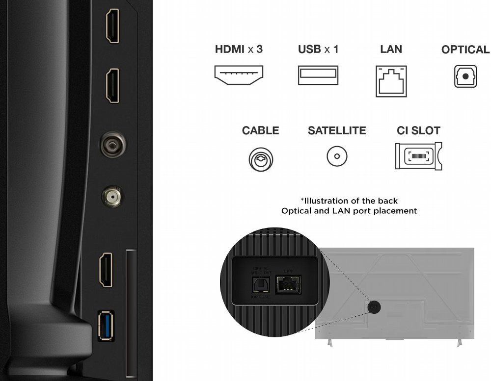 Met een native verversingssnelheid van 60Hz worden bewegingen soepel weergegeven, ideaal voor films en dagelijks gebruik. De televisie beschikt daarnaast over meerdere HDMI 2.1 aansluitingen, een eARC aansluiting voor soundbars, USB poorten en een ethernetpoort, waardoor je hem moeiteloos integreert in iedere moderne thuisopstelling.